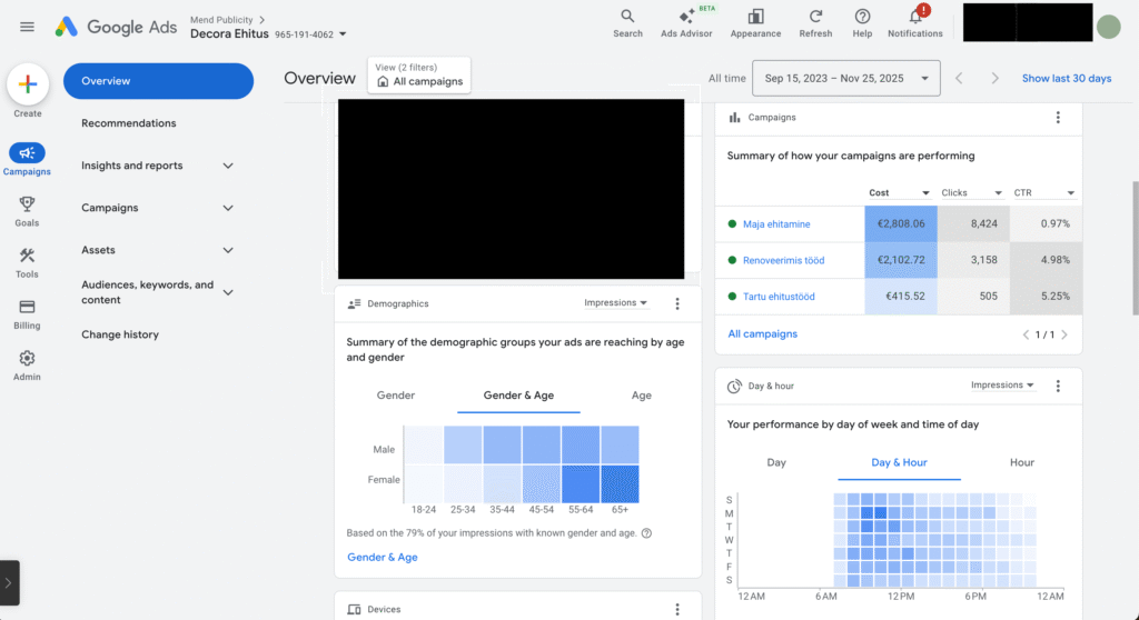 Nende teenuste puhul on klient ostuvalmis ja konkurents otsingus tihe — oluline oli jõuda inimesteni, kes otsivad aktiivselt ehitusteenuseid.