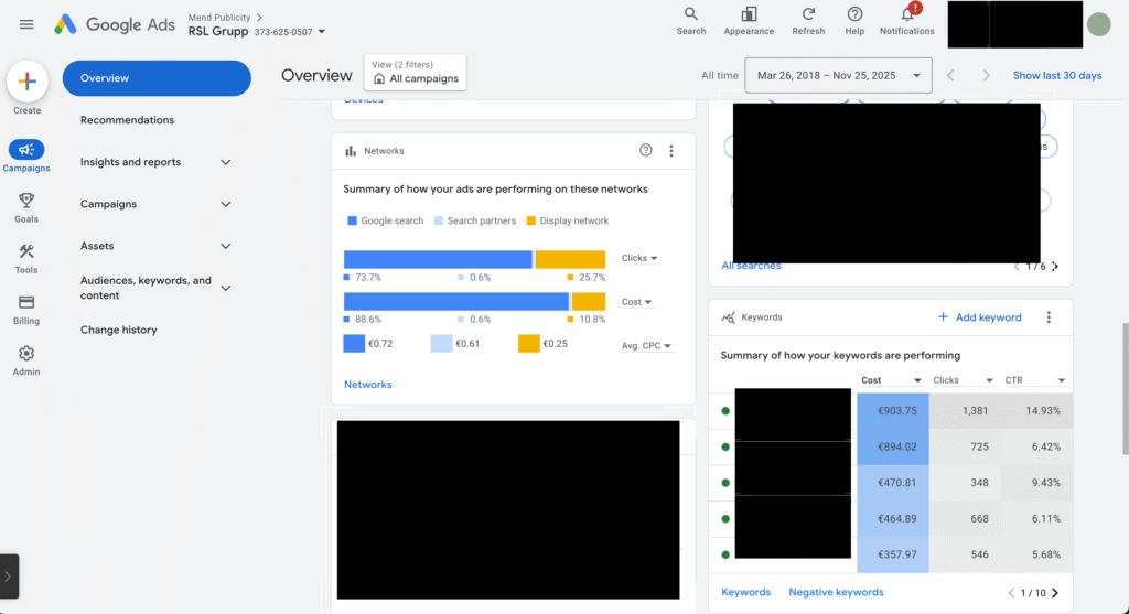 Lõime RSL Grupile jätkusuutliku ja laiendatava Google reklaamisüsteemi, mis katab nii hooajalist kui püsivat nõudlust.